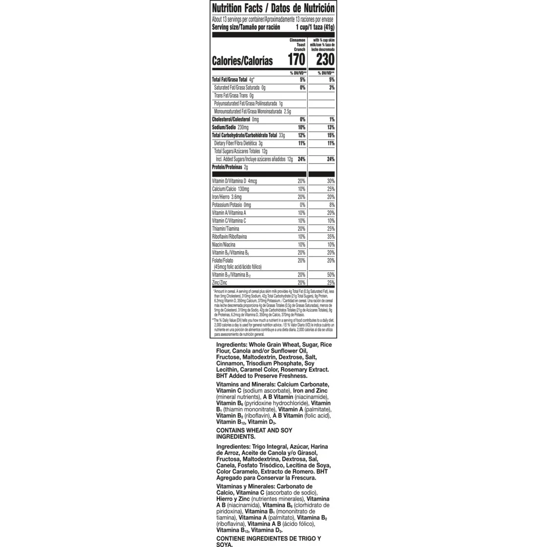 Cinnamon Toast Crunch Breakfast Cereal by General Mills is made with crispy whole wheat and rice squares coated in real cinnamon and sugar. Cinnamon Toast Crunch is a beloved classic breakfast Cereal. Each bite delivers a perfect balance of sweet, crunchy, and cinnamon-spiced flavor that stays delicious even in milk. Fun and irresistible, Cinnamon Toast Crunch is a favorite for breakfast or snacking anytime.